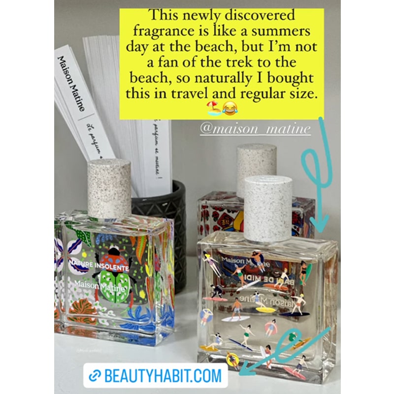 Beautyhabit visit by Jessica Radloff, Glamour, Senior West Coast Editor (Instagram Story Post) - Maison Marine Bain de Midi Eau de Parfum...