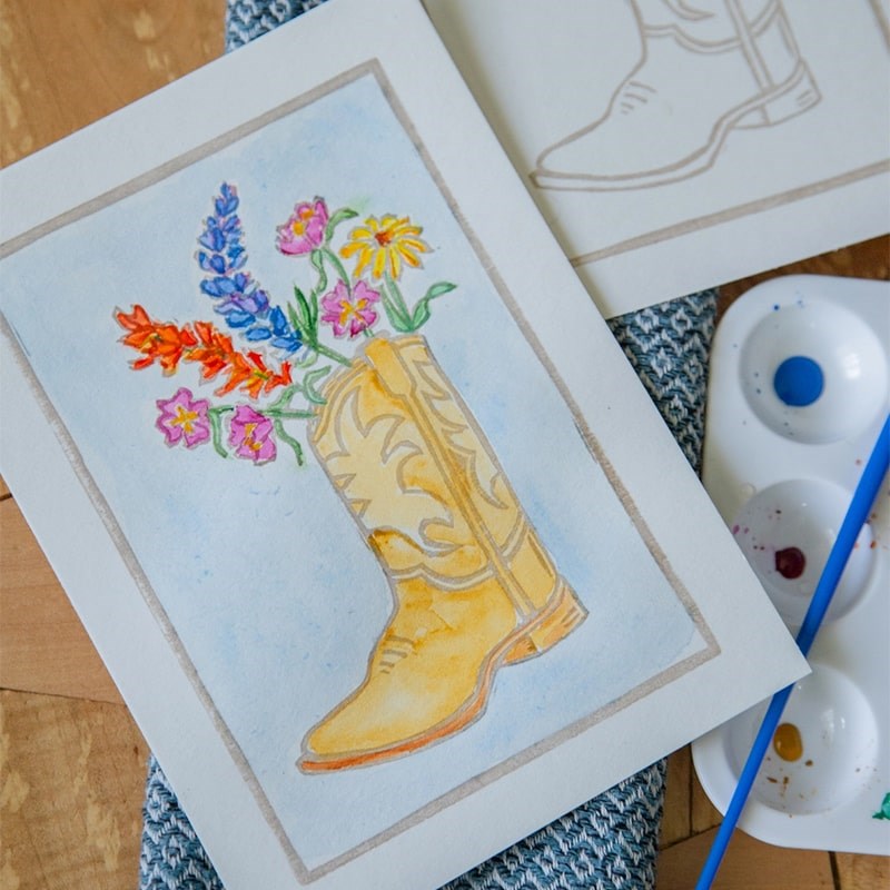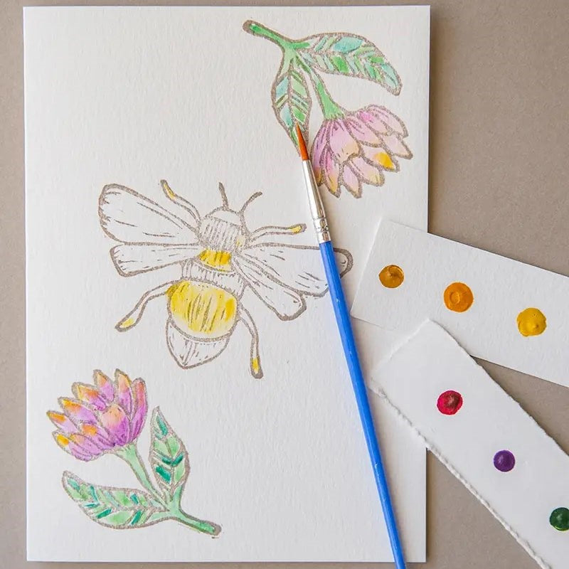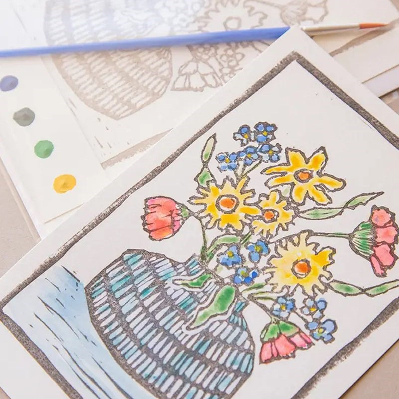 Michelle Nowels is a relief print artist working with hand carved lino cuts and tree rings. She creates art kits for others to enjoy and add their own creative spin to. Each art kit comes with everything you will need to create a beautiful watercolor painting, all you need is water.