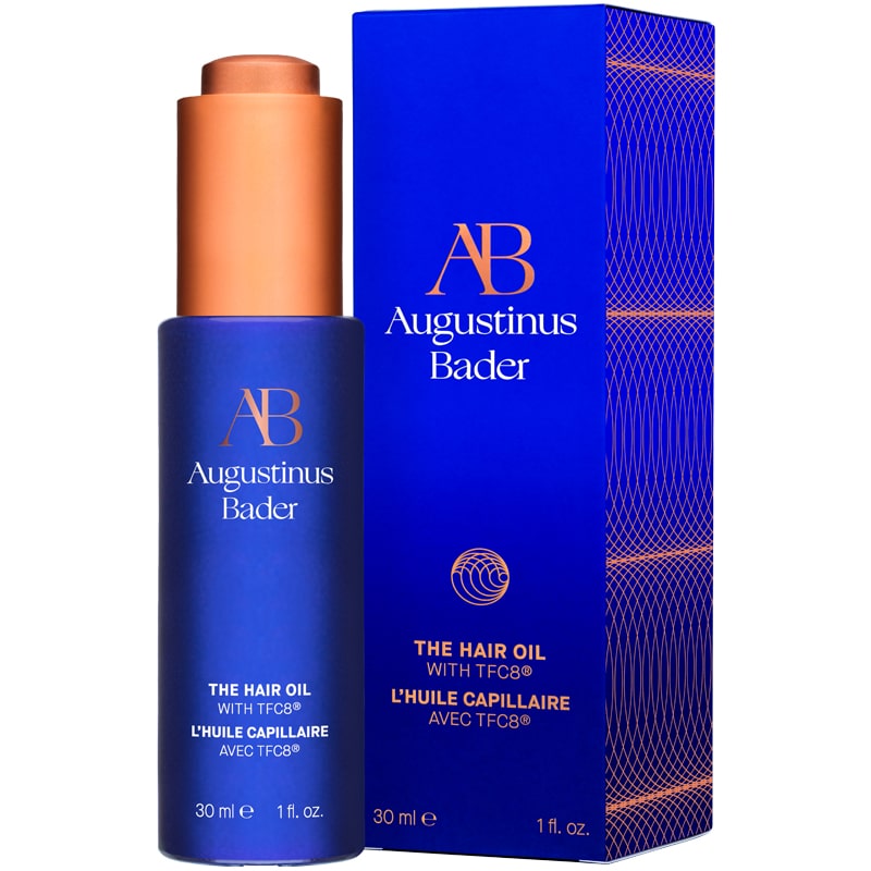 Augustinus Bader The Hair Oil showing product with blue packaging