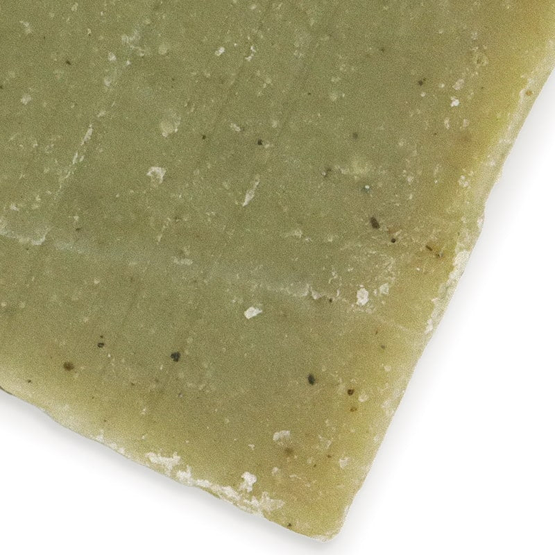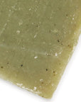 Up close shot of Bathing Culture Mind and Body Bar - Cathedral Grove unwrapped to show color and texture