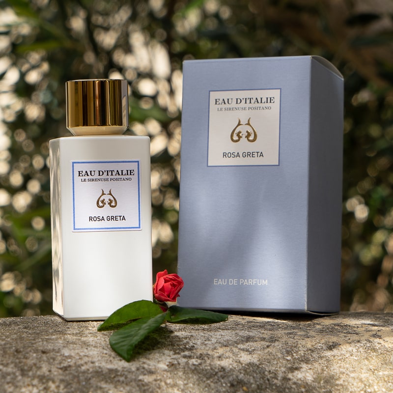 Garbo the divine shone again in all her light, having lived moments of secret happiness with her new lover. From then on, she became her real self. Love, the sea, the sky and the roses had done the miracle. Her presence in Ravello was never forgotten, and to this tale of love and life Eau d’Italie dedicates this Eau de Parfum Rosa Greta.