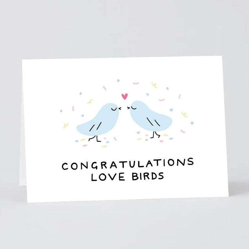 Just a couple of feathered friends having a cheeky peck. This charming newly-wed card has been illustrated by Holly St Clair in sweet, pastel hues.