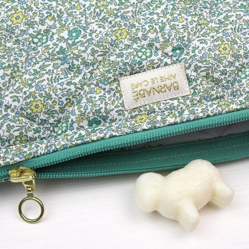 Barnabe Aime Le Cafe Liberty Quilted Toiletry Bag - Andrea - product shown opened