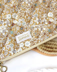 Nylon zipper with brass slider. Liberty® of London 100% cotton fleece fabric. Reach certified washable PVC interior (without bisphenol or phthalates).