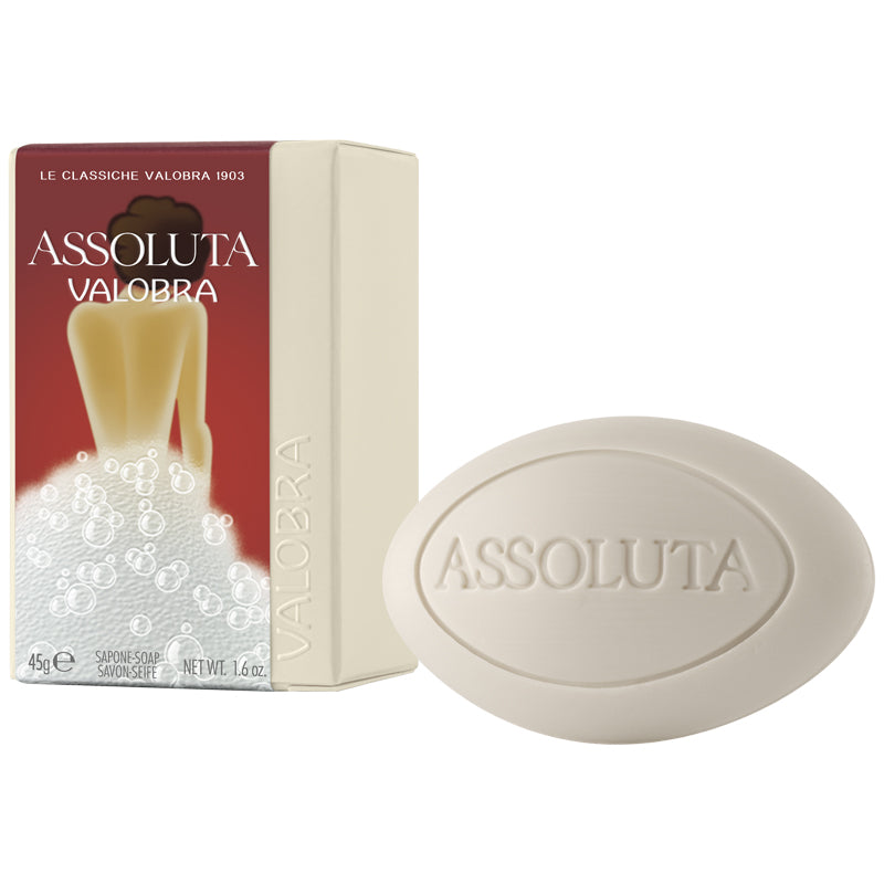 Valobra Assoluta soap is infused with shea butter cream, ideal for soft, velvety skin. A rich, powdery fragrance with aromatic notes of geranium and rose on a foundation of patchouli. An extraordinary experience that involves all the senses.