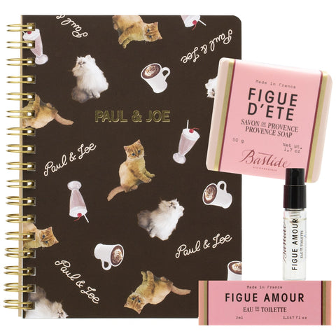 Includes: Paul & Joe Beaute Spiral Notebook (Measures approx.: 4.25" W x 5.75" H., Bastide Figue D'Ete Provence Soap (50 g) and Bastide Figue Amour Eau de Toilette (2 ml).