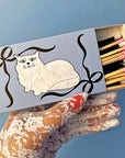 Who wouldn't want this adorable matchbox sitting around their house? The matchbox features the same art on the front and back: a kitty cat with bows.
