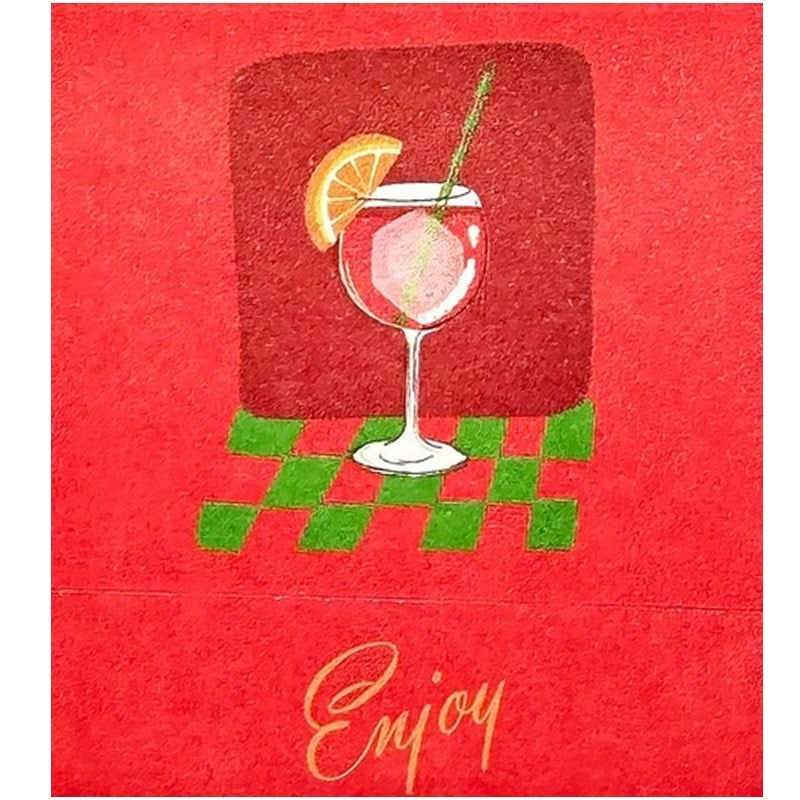 This matchbook features one of the best cocktails—an Aperol spritz! The inside of the matchbook has the recipe for the cocktail, and each match features a different ingredient from that cocktail.