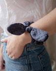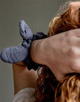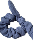 Cotton gauze scrunchie decorated with a bow. To tie on a ponytail or a bun for a retro hairstyle!