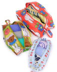 A set of three zippered pouches for travel and organization, with loops for carrying and hanging on the go. Perfect for packing, organizing your bag, or home tidying.