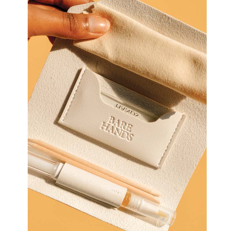 Reveal your healthiest natural nail. Packed in a vegan leather case, The Polisher and Cuticle Oil hydrate, condition cuticles, and add a natural shine—with only the purest ingredients.