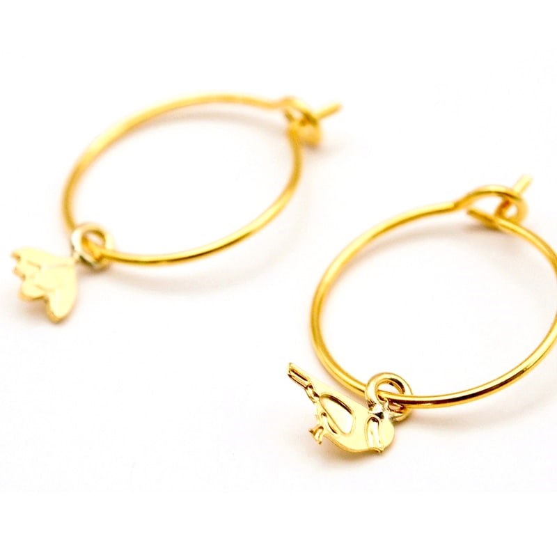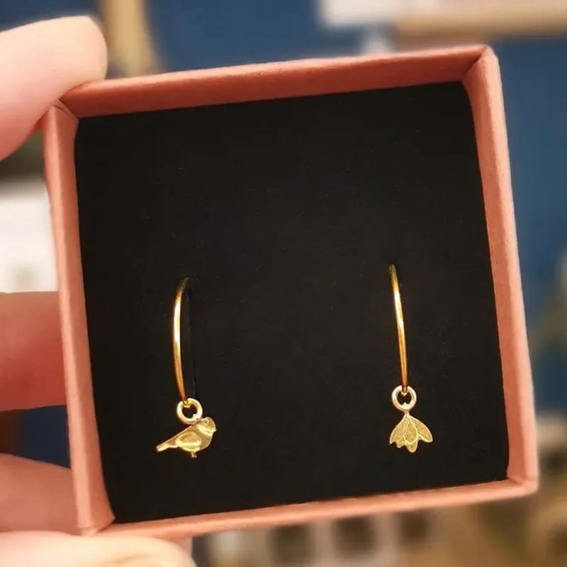 Fine flower and bird brass gilded with 24 carat fine gold. No trace of allergenic metal.