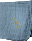 Double Gauze Cotton Embroidered Swaddle Denim Blue - Rabbit