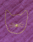 Double gauze cotton swaddle dyed according to OEKO-TEX® standards. The more you wash it, the softer it gets. Charming Cat embroidery with gold thread is in one of the corners. Very often chosen as a comforter by very young children, this swaddle goes everywhere! To be used as a bib, shoulder protector for burping, towel under the baby's head in the crib, a scarf to protect baby's clothes and more.