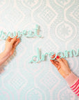 "Sweet dreams" in pale aqua is perfect for a child's room or nursery. Just prop it on a bookshelf or attach it to the wall using small brass cuphooks...just don't let it be used as a toy!