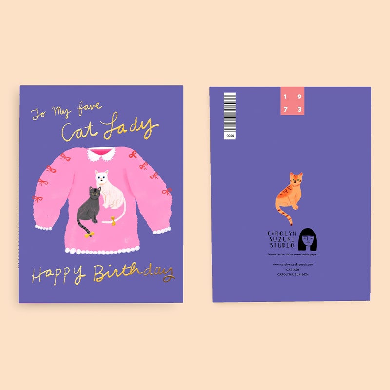 Celebrate your favorite cat lady's birthday with this charming Carolyn Suzuki Goods card.