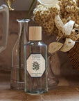A botanical cloud rises in the silliage of the Carrière Frères room spray. Its faceted silhouette is an homage to ancient apothecary jars highlighting the herbalist inspiration behind the brand. It comes in the shape of an apothecary flask and is recognizable to its bluish tint. The room spray’s visual identity is coherent, expressed through the octagonal shape of the label and flask.