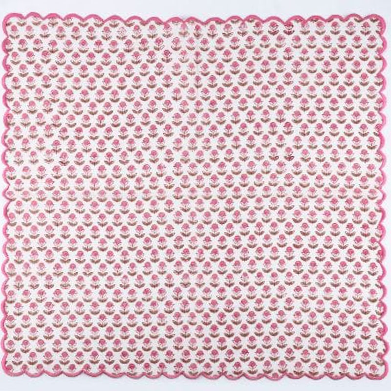 These napkins are scalloped on the edges by natural threads and carefully hemmed. Each napkin has been pre-washed and made carefully, with its four hems turned by hand before stitching so that you have a beautiful, long lasting, thoughtfully sewn item.