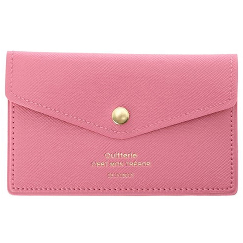 Delfonics Quitterie Card Case with Snap – Pink shown closed