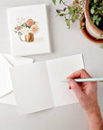 Send sweet greetings to your loved ones. These Dahlia Bouquet notecards are blank on the inside with a charming watercolor illustration of a bouquet on the front. They bring a touch of cozy cheer to your thank you notes, get well wishes, and more.