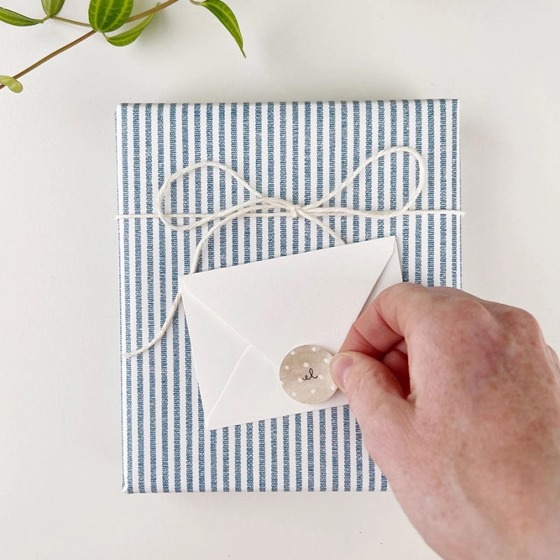 Emily Lex Studio Hobnail Bouquet Mini Notecard - model shown placing sticker on product on top of gift