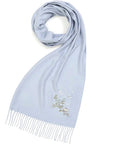 Step into an enchanted woodland with Fable England's Magical Mushroom Embroidered Cosy Blue Scarf. This super-soft pashmina-style scarf, featuring intricate mushroom embroidery, wraps you in both warmth and wonder. It's a true cozy companion for brisk walks or fireside reading.