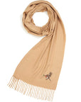 Let the spirit of winter take flight with Fable England's Robin Embroidered Cosy Camel Scarf. Made from ultra-soft fabric, this camel-colored pashmina-style scarf showcases a beautifully embroidered robin in flight, adding a touch of seasonal magic to your everyday style.