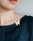 Fog Linen Work Cat Brass Brooch Oscar - model wearing product on shirt shown