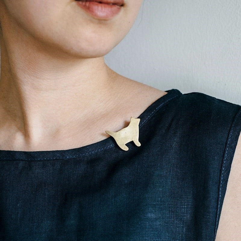 Fog Linen Work Cat Brass Brooch Oscar (1 pc)