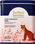 Rich and fragrant, Herbs & Kettles' Rose Cardamom Chai combines single-origin loose leaf Assam black tea with delicate rose petals, generous green cardamom, and traditional chai spices. This exquisite blend offers a surreal tea experience transporting you to a world of pure indulgence.