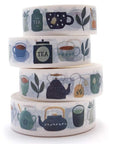 This cute washi tape is made from Julianna Swaney's original hand painted designs and features a cavalcade of all things for a tea Lover! Things such as various pretty tea pots, tea cups, tea leaves, pretty tea tins and jars of honey. Just what you for a cozy time!