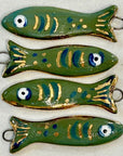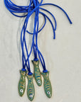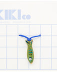 Handmade and painted sardine charm with gold luster. Each charm comes on a blue cord and can be easily removed to be added to your own piece of jewelry. Perfect for the tinned fish lover in your life!