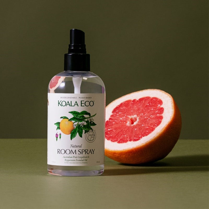 Koala Eco's Australian Pink Grapefruit & Peppermint Room Spray combines nature's most aromatic plants in one invigorating formula. This biodegradable and eco-friendly plant-based spray effortlessly and safely brings the luscious scent of the Australian bush into your home, without the need for toxic chemicals. Allow this uplifting mix of pink grapefruit and refreshing peppermint to lift your spirits, and bring the scent of ‘real’ Australia into your home.