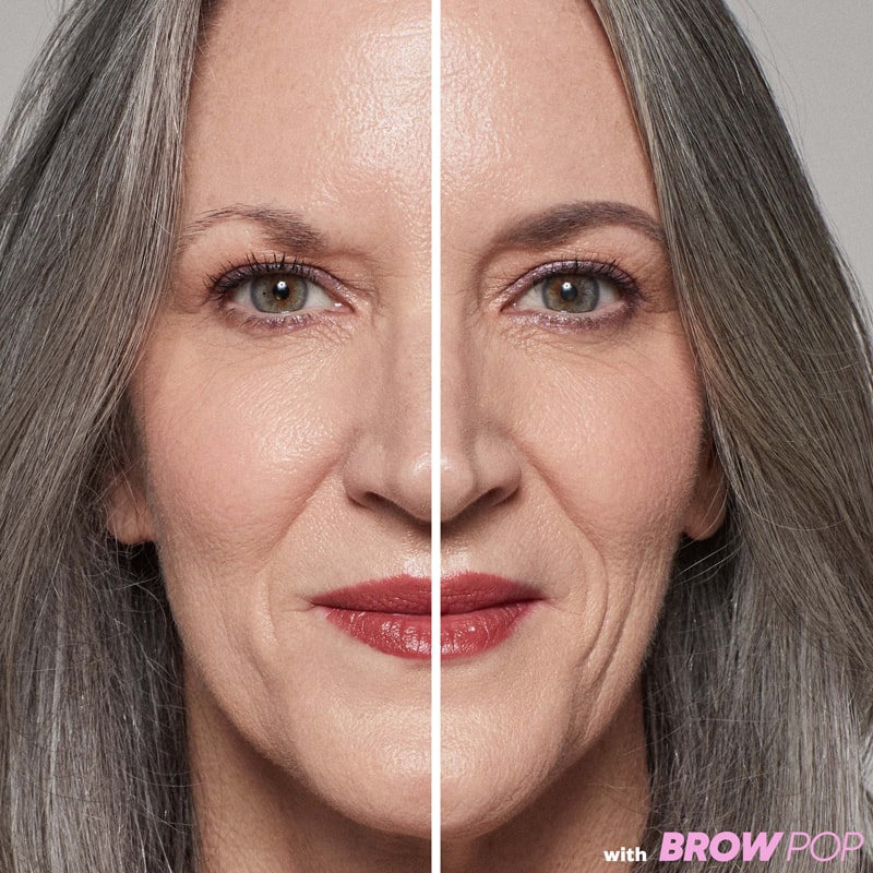 Brow Pop has a dual-sided triangular tip. Use the thick side to fill in bald spots, and the thin side to shape, sculpt and add precise, feathered hair strokes. Built-in spoolie for perfect blending.