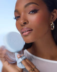 2. Press and roll puff onto skin.