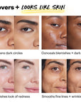 This silicone-free formula blends easily and seamlessly melts into skin. It helps reduce the appearance of dark circles, hyperpigmentation, redness and blemishes but still fully looks like your skin. Buildable coverage is delivered in an eye cream base packed with hyaluronic acid, peptides, and caffeine that visibly brightens, hydrates and plumps. Clinically proven to improve the quality of bare skin over time and reduce the appearance of fine lines and wrinkles. Safety tested to not clog pores or cause breakouts.