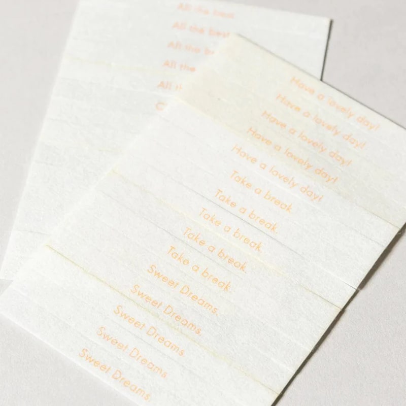 On each individual strip is printed words of encouragement, with notes such as "Cheer Up!" or "Take a Break" providing messages of warmth and solidarity as they fill a space with fragrance. Slip one into a gift or card as an aromatic affirmation, or enjoy this incense at home as a way to brighten your day.