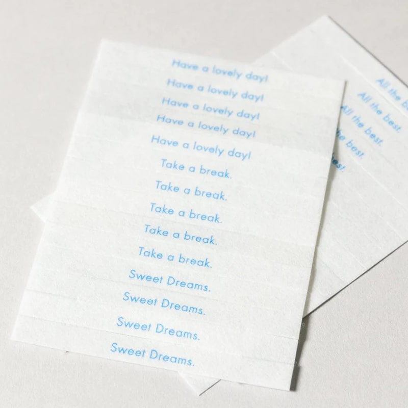 On each individual strip is printed words of encouragement, with notes such as "Cheer Up!" or "Take a Break" providing messages of warmth and solidarity as they fill a space with fragrance. Slip one into a gift or card as an aromatic affirmation, or enjoy this incense at home as a way to brighten your day.
