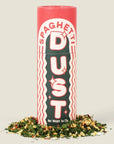 Spaghetti Dust by L'Isolina is a ready-to-go tube of traveling Aglio, Olio e Peperoncino. The idea is that you drain your al dente pasta and toss it in a bowl with your Spaghetti Dust and ≈ 1/3 cup of high-quality Extra Virgin Olive Oil, then serve immediately at the table or, if it's been a late night, you consume it entirely and directly on the kitchen counter.