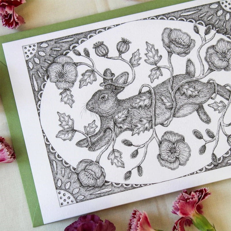 Mackenzie Myrick Studio Through the Poppies Greeting Card - life style shot of card on top of envelope with flowers