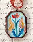 The Love Birds Small Locket is a high quality giclée print on 100% cotton paper - framed in a petite antiqued bronze locket frame. This is a reproduction of an original collage which featured papers from the 18th and 19th centuries, as well as hand painted cotton papers.
