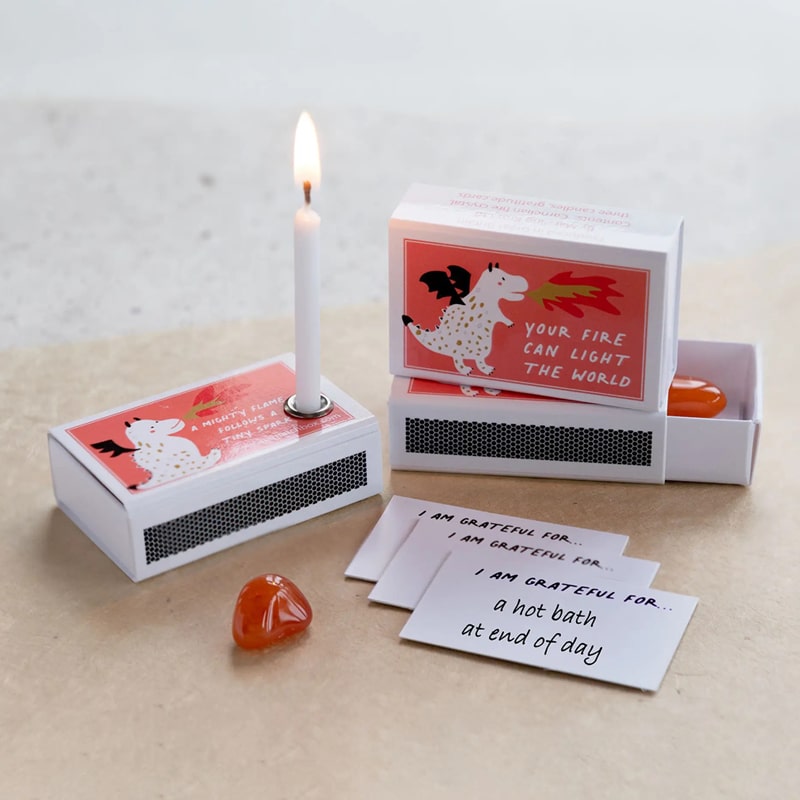 Marvling Bros Ltd Your Fire Can Light The World Mindfulness Gift showing suggested use of matchbox