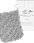 A facial scrub towel infused with binchotan charcoal to amplify any beauty regimen. Ultra-fine binchotan charcoal powder is infused into every fiber of this highly exfoliating Face scrub towel. The charcoal helps to absorb oil and impurities from the skin and leaves the skin feeling smooth and refreshed.
