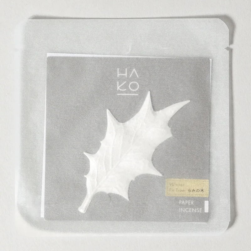 An individually packaged HA KO leaf is the perfect introduction to this new form of incense, which was developed over the course of five years by one of Japan’s oldest incense makers. Each leaf can be used as subtle potpourri, giving off fragrance for up to three months, or as incense that burns for approximately seven minutes while cleansing and deodorizing an area.