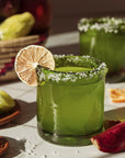 The glass vessels were hand blown by artisans in Mexico City. Be sure to use them for your favorite Margarita or Paloma once you’ve burned through your candle.