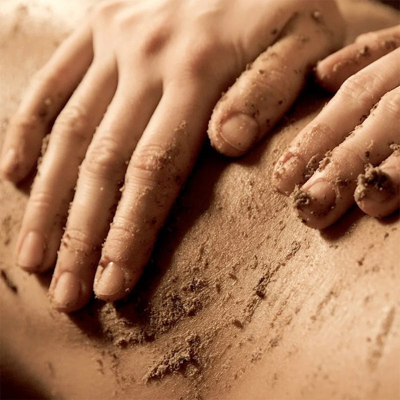 Apply the scrub to damp skin after washing. Massage in circular movements, then finish by rinsing with clean water. Use your scrub once or twice a week.