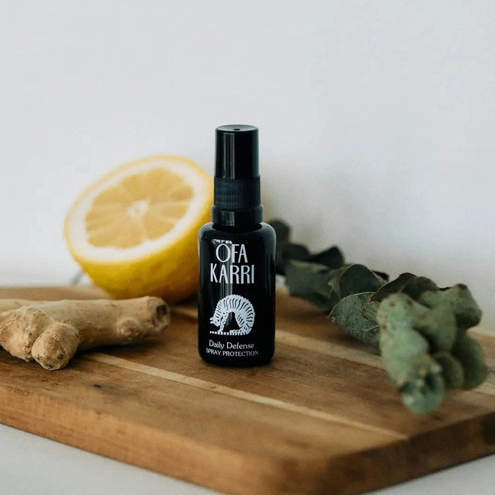 Daily Defense is a natural spray formulated with organic essential oils, known for their immunity-boosting and protective properties. Designed to strengthen your immune system, it serves as a natural barrier, offering continuous protection against external threats such as viruses, bacteria, and seasonal infections.