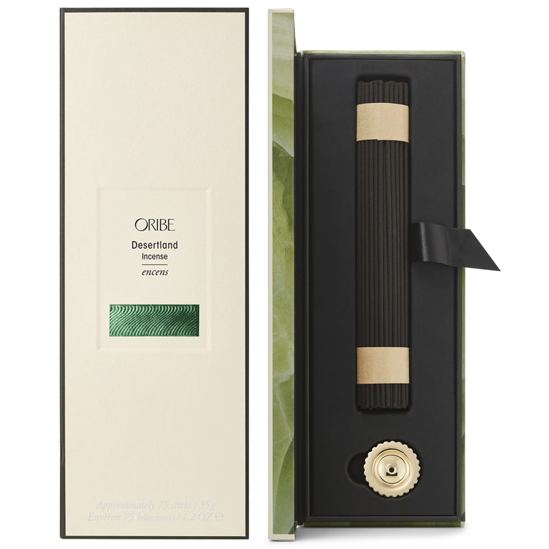 Relax and rejuvenate. Let the artisanal Japanese incense transport you within. Oribe’s Desertland fragrance, with crisp notes of juniper berry, aromatic lavender, sunstruck pine and Texas cedarwood, infuses these sleek incense sticks, designed to be an essential part of your daily practice. May each inhale be more beautiful.