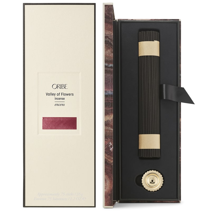 Relax and rejuvenate. Let the artisanal Japanese incense transport you within. Oribe’s Valley of Flowers fragrance, with fresh notes of Bulgarian rose, peony blossoms and textured woods, infuses these sleek incense sticks, designed to be an essential part of your daily practice. May each inhale be more beautiful.