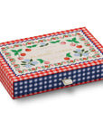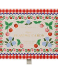 A pair of standard playing card decks, elegantly housed in a decorative keepsake box accented with gold foil and a ribbon pull tab. Each card showcases vibrant, full-color illustrations by Rifle Paper Co., with beautifully embellished face cards and jokers for an extra touch of charm.